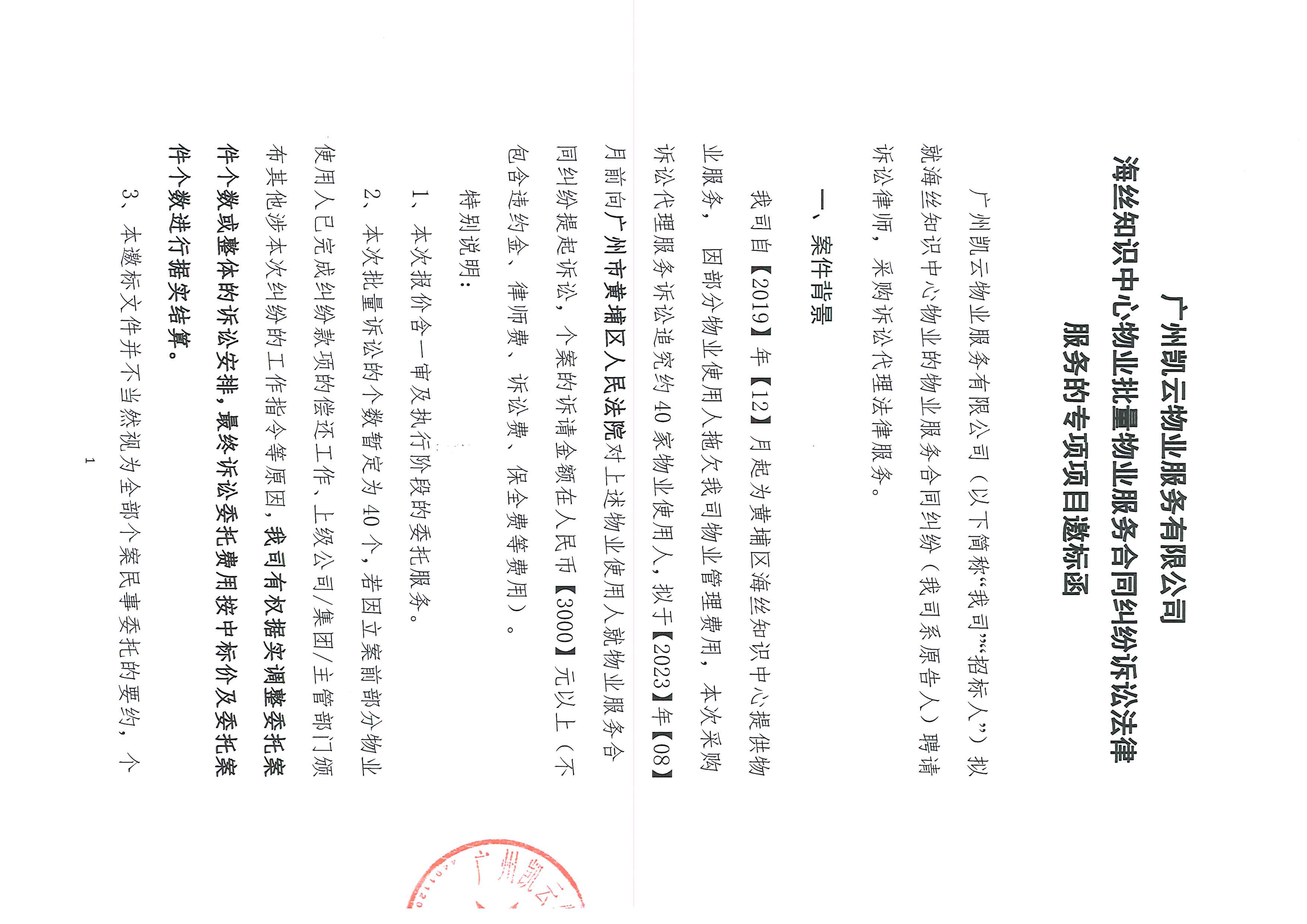 广东海丝知识中心物业批量物业服务合同纠纷诉讼法律服务的专项项目邀标函-1